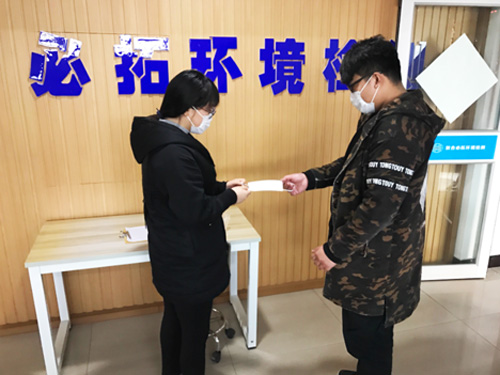 2020年2月12日早8點(diǎn),致合必拓綜合部的工作人員已全部到崗,并在公司大門處設(shè)置疫情防控檢查站。檢查站配備酒精、紅外線體溫計(jì)以及公司統(tǒng)一購置外科防護(hù)口罩等防疫用品,工作人員堅(jiān)持信息登記制度,對(duì)進(jìn)出人員、消殺防疫情況進(jìn)行嚴(yán)格登記。所有員工也深知防疫工作的重要性,積極有序地配合工作人員進(jìn)行體溫檢測以及噴灑酒精消毒等防疫工作。