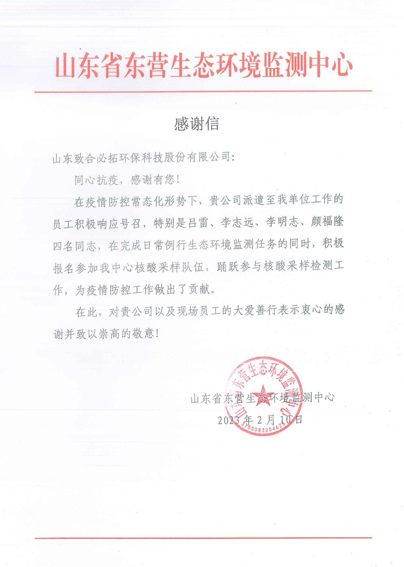 在疫情防控常態(tài)化形勢(shì)下,貴公司派遣至我單位工作的員工積極響應(yīng)號(hào)召,特別是呂雷、李志遠(yuǎn)、李明志、顏福隆四名同志,在完成日常例行生態(tài)環(huán)境監(jiān)測(cè)任務(wù)的同時(shí),積極報(bào)名參加我中心核酸采樣隊(duì)伍,踴躍參與核酸采樣檢測(cè)工作,為疫情防控工作做出了貢獻(xiàn)。