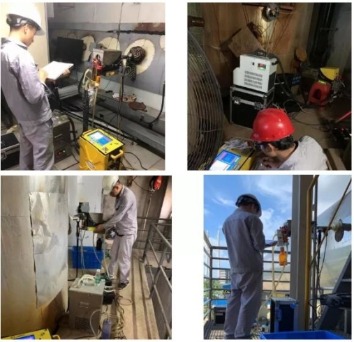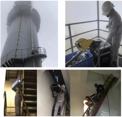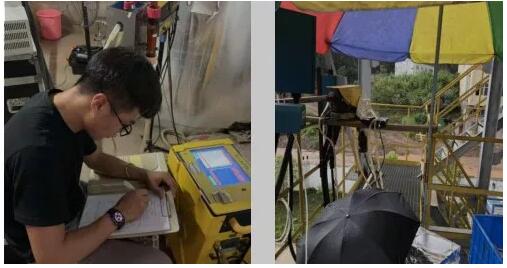 雖然已入秋,但南方此時(shí)正值高溫高濕、時(shí)雨時(shí)晴的臺(tái)風(fēng)天氣。晨光熹微,采樣人員整裝出發(fā),分組“空降”到計(jì)劃監(jiān)測(cè)的生活垃圾焚燒廠。遇到現(xiàn)場(chǎng)無升降設(shè)備時(shí),采樣人員手抬、肩扛將重達(dá)幾十公斤的采樣設(shè)備搬運(yùn)至30多米高的監(jiān)測(cè)平臺(tái),在近45℃高溫的環(huán)境下堅(jiān)守7個(gè)多小時(shí)進(jìn)行監(jiān)測(cè)。采樣過程中考驗(yàn)他們的是超過60度的斜梯,半只腳掌寬的臺(tái)階,空間逼仄的通道,讓人喘不過氣的高溫,但采樣人員常常打趣的給自己解壓,“肩上的擔(dān)子很重、腳下的腳印很深”。一天下來,個(gè)個(gè)大汗淋漓、衣衫濕透,但他們攜帶的風(fēng)扇第一時(shí)間是給儀器降溫,防止設(shè)備“中暑”。